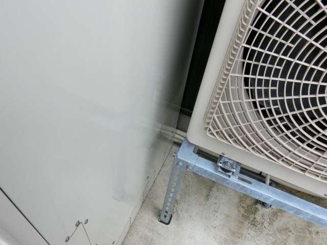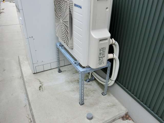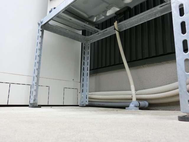 室外機から発生・ドレン穴から排出される結露水によって設備台・土間コンクリートが汚れる(藻の発生等)のを防ぐ配慮。