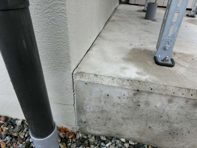設備台が少し沈下して基礎との間に隙間が空いている状態を確認。次回の2年目点検まで様子見となった。