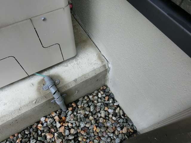 室外機から発生・ドレン穴から排出される結露水によって設備台・土間コンクリートが汚れる(藻の発生等)のを防ぐ配慮。