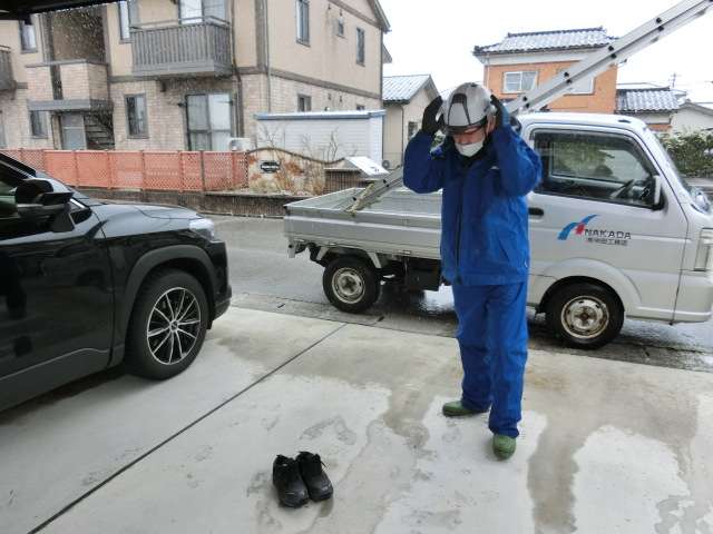 本日は雪混じりの天候であったが、屋根点検を強行実施。
