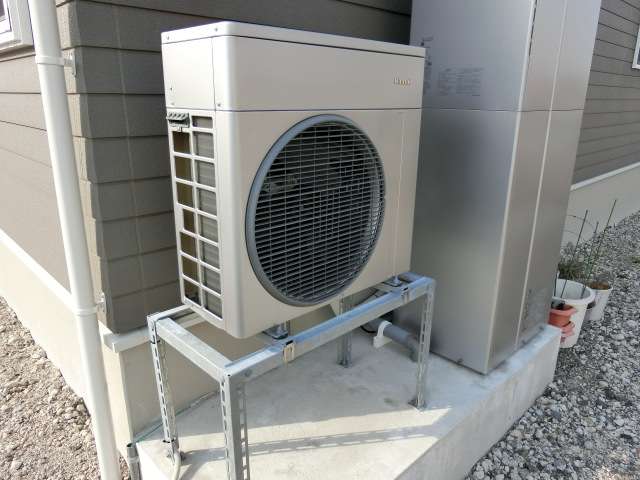 室外機から発生・ドレン穴から排出される結露水によって設備台・土間コンクリートが汚れる(藻の発生等)のを防ぐ配慮。