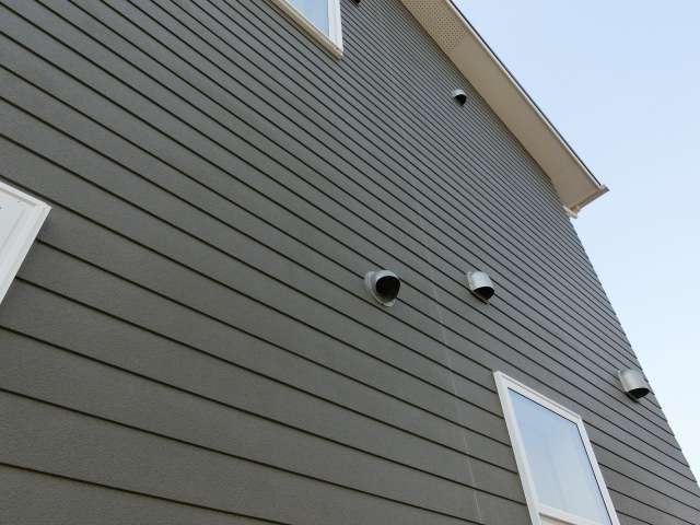 外壁材は窯業系サイディング仕様。雨垂れ跡は特に目立っていなかった。