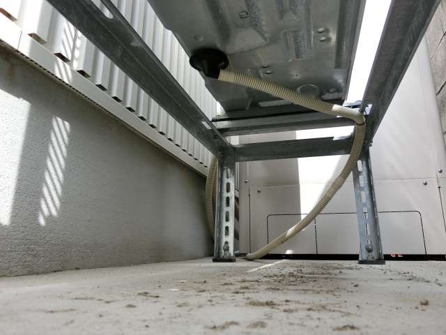 室外機から発生・ドレン穴から排出される結露水によって設備台・土間コンクリートが汚れる(藻の発生等)のを防ぐ配慮。