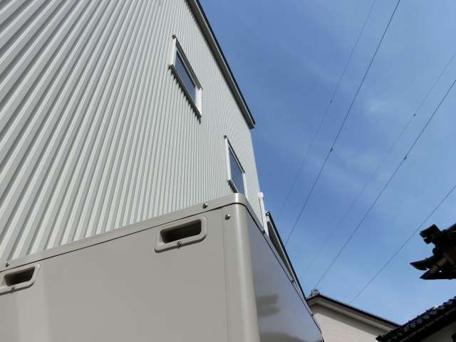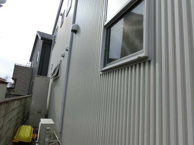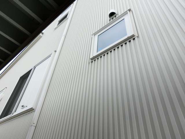 外壁材はガルバリウム鋼板仕様。雨垂れ跡は特に目立っていなかった。