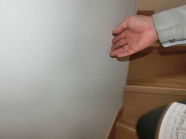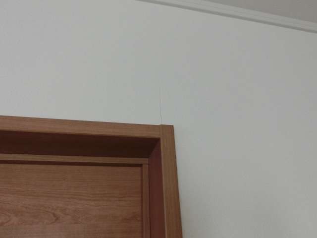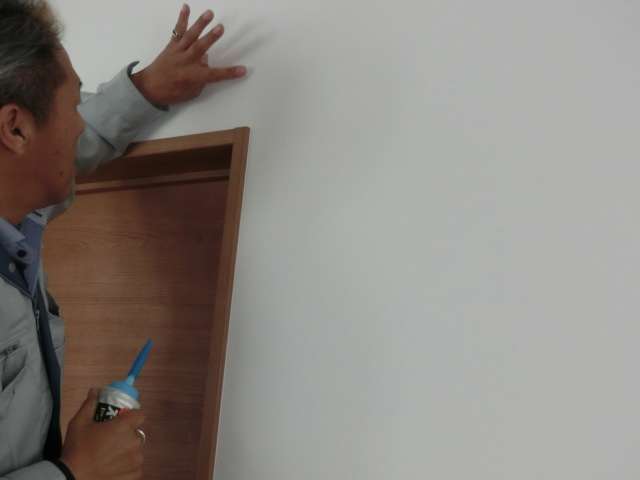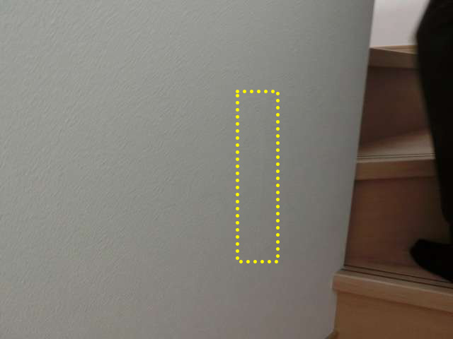現状を確認。下地のジョイント部分でクロスが少し段差のある状態。
