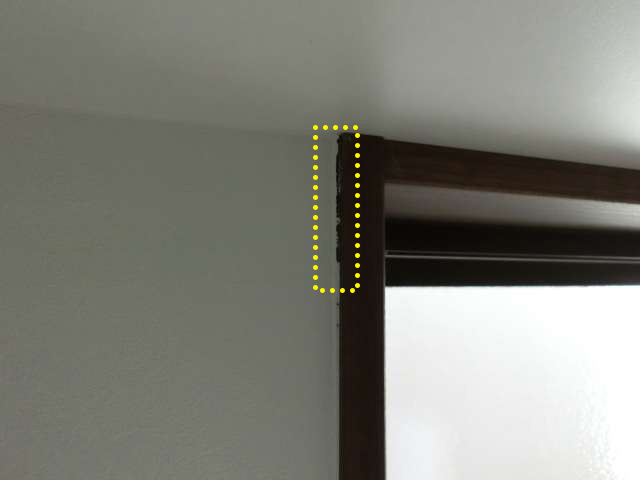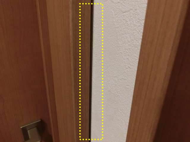ドア枠の入隅に隙間があるのを発見。コーキングを充填することとなった。