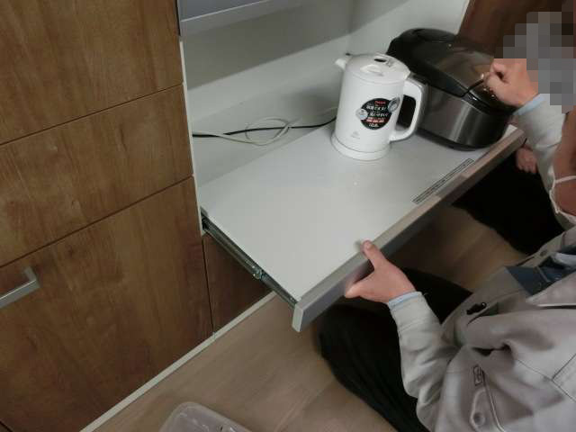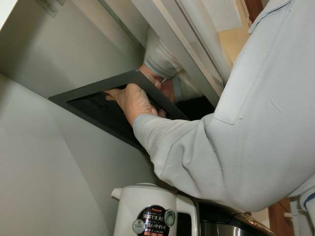 排気口にあるファンの吸い込みが少し弱いように感じられた。お客様との協議の結果、炊飯時はスライド台を手前に引いて使用して頂くよう助言。
