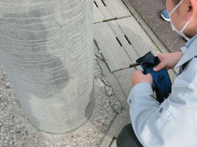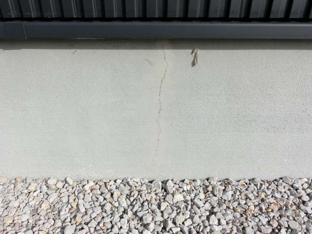 基礎化粧モルタルのヒビ割れを確認。引き渡し前にも対処していたが、新たに発生している部位もあった為、改めて対応することとなった。